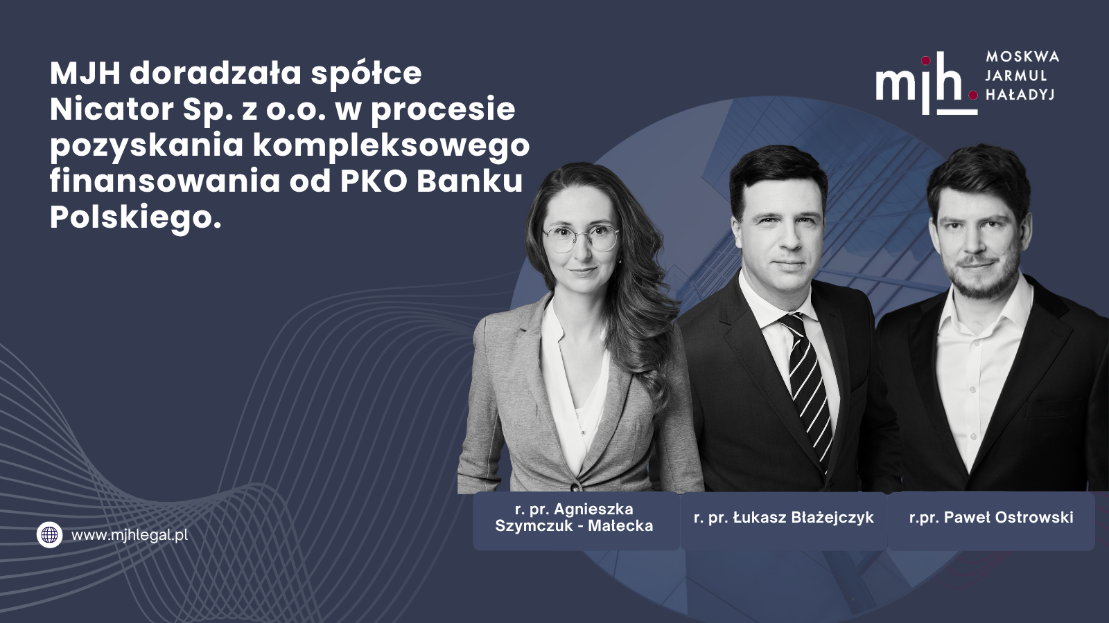 MJH doradzała spółce Nicator Sp. z o.o. w procesie pozyskania kompleksowego finansowania od PKO Banku Polskiego .